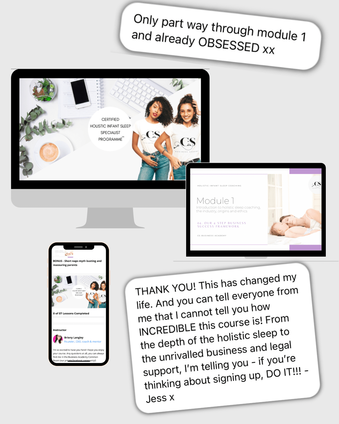That's why my team researched extensively to find the tech support to be able to deliver a to quality course that you can take in your OWN TIME, ANY TIME, ANYWHERE... even your phone... but without passing high costs on to you like so many other providers. I wanted this to be achievable for women on mat leave who, just like me, realised they wanted to have their cake (be with their kids!) and eat it too (have a rewarding career they love!)